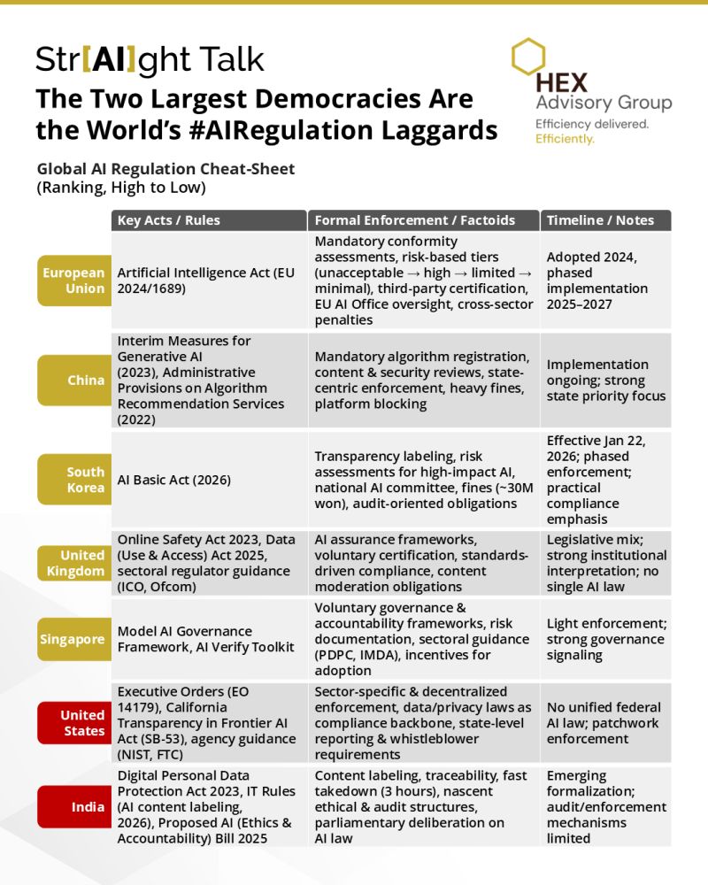 The US and India, the world’s two largest democracies sit at the BOTTOM of global AI regulation readiness. That’s not a prediction, it’s a fact.